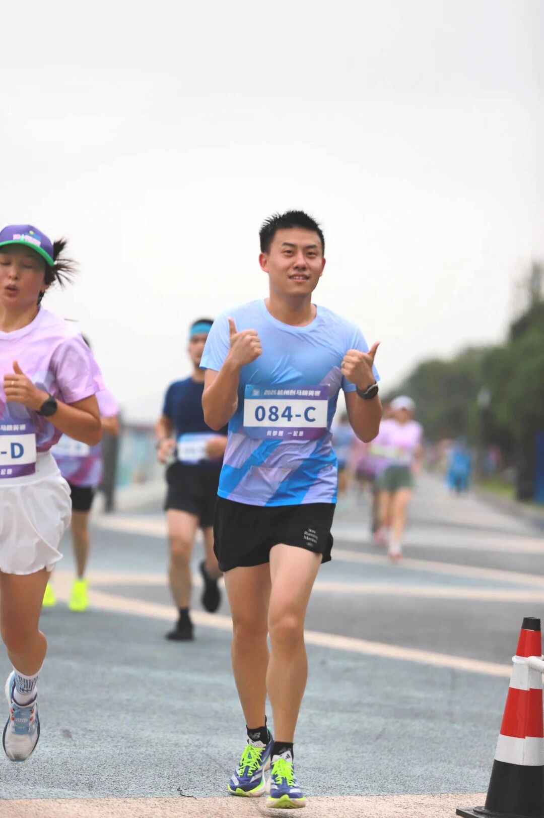 本次比赛从钱江龙广场启程,沿之江绿道至5.2公里处折返,最终回到起点。持续的大雨让赛道格外湿滑,这不仅是对选手体能的考验,更是对其意志的挑战。