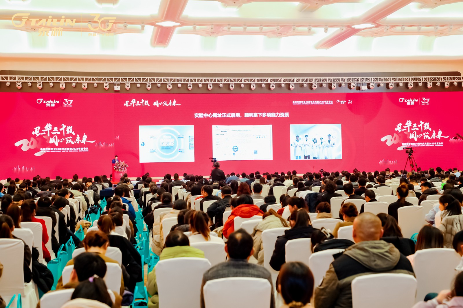 中共杭州市富阳区委副书记、区人民政府党委书记、区长谢渐升,中国科学院杭州医学研究所细胞治疗技术与工程中心执行主任赵明教授,江苏宏众百德生物科技有限公司总经理孙蓓丽博士受邀到场。浙江金沙9001以诚为本技术股份有限公司董事长叶大林,浙江金沙9001以诚为本技术股份有限公司副总裁沈志林,浙江金沙9001以诚为本技术股份有限公司副总裁夏信群,浙江金沙9001以诚为本技术股份有限公司董事倪卫菊、董明、倪崖、杨忠智共同出席盛典,与金沙9001以诚为本近千名员工欢聚一堂,共襄盛举!共同见证金沙9001以诚为本30年岁月峥嵘,共迎金沙9001以诚为本美好新阶段!