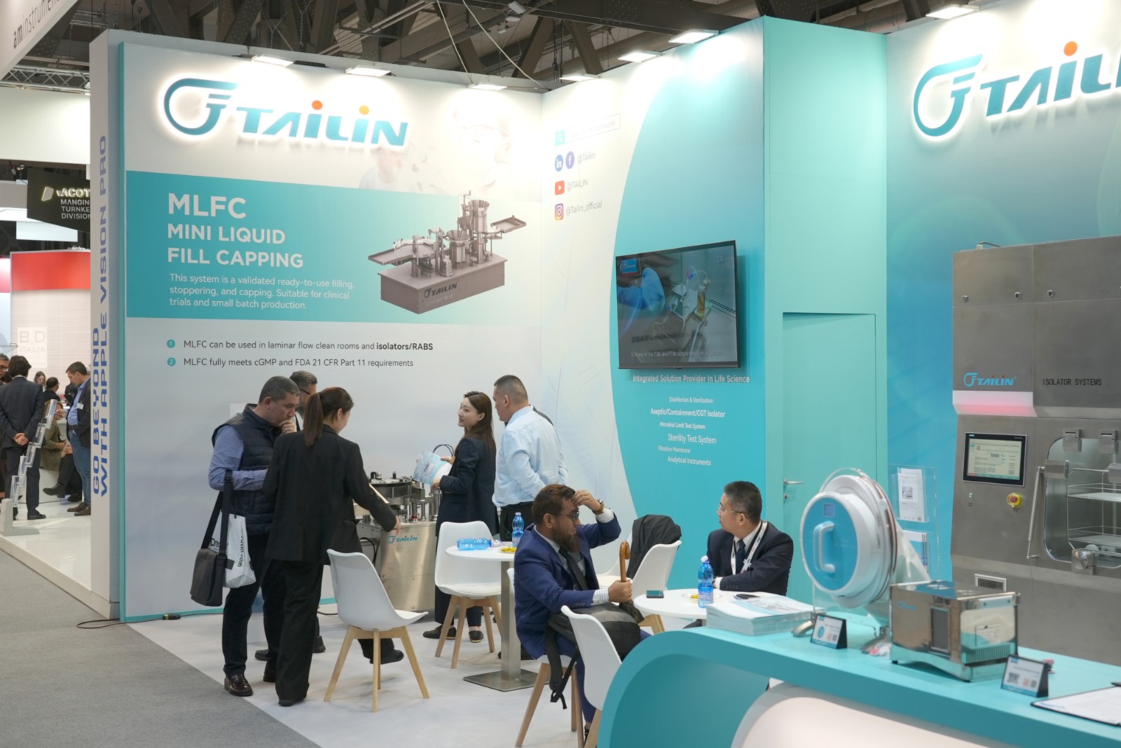 金沙9001以诚为本作为生命科学领域“创新研发”和“新质生产力”的代表,携其旗舰产品无菌检查隔离器、手套完整性测试仪、全自动菌落计数系统、智能集菌仪、微生物检验仪、滤芯测试仪等产品亮相,为行业呈现了一场数智科技场景成果盛宴。此次在海外展会首次璀璨亮相的微型液体灌装机,以其卓越的即用型灌装加塞轧盖系统ML FC,成为了全场瞩目的焦点。MLFC极致缩小尺寸,以适合隔离器化趋势,满足客户在C级背景环境进行无菌灌装的需求。金沙9001以诚为本依托数智科技,创新运用自动化、AI等新兴技术,深入挖掘用户需求,打造出全场景全流程自动化、数智化解决方案,满足生命科学与高端装备高质量发展要求。